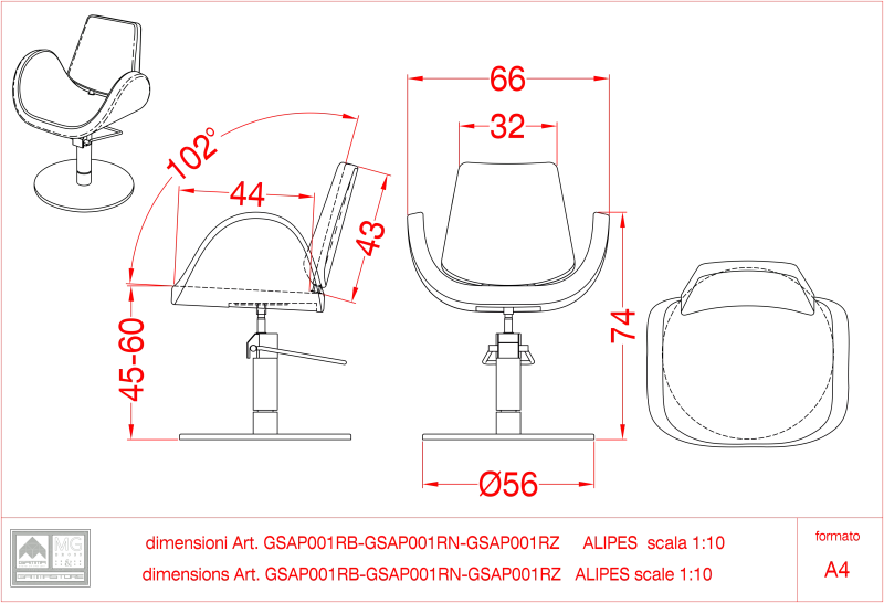 Frisörstol med mjuka former från Gamma Bross med låsbar pump.