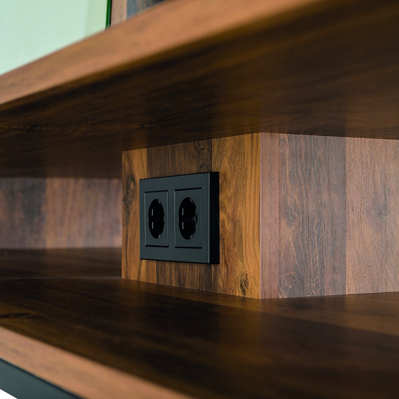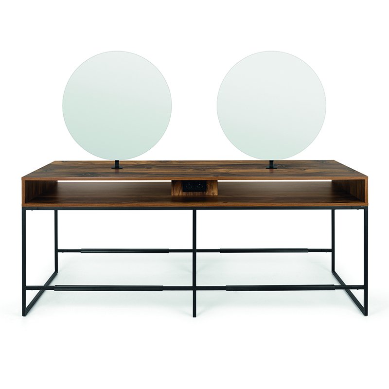 Praktiskt hylla med integrerat eluttag. Välj mellan olika laminat i svart eller orange färg på stålbenen. Du väljer om du vill ha plats för 1, 2 eller 4 personer, olika pris för olika utförande.