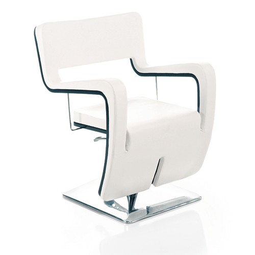 Snygg och kaxig frisörstol med design från serien "Black" av F.A Porsche från Gamma Bross. Stol med låsbar pump, fyrkantig platta med svikt i ryggen.