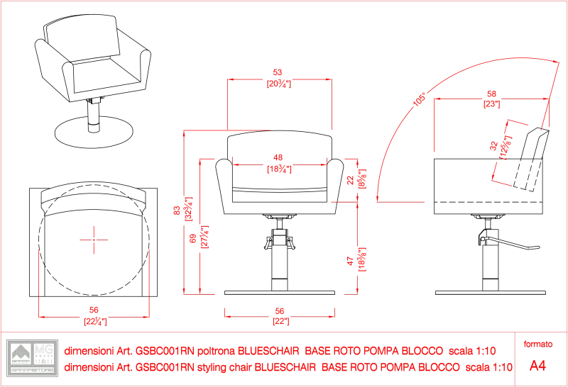 Retroflirtande frisörstol från italienska Gamma Bross - från serien NeoDecò. Klädd i följsamt konstläder med snygga detaljer i sömmarna. Det går att välja andra pumpar och andra färger mot pristillägg.