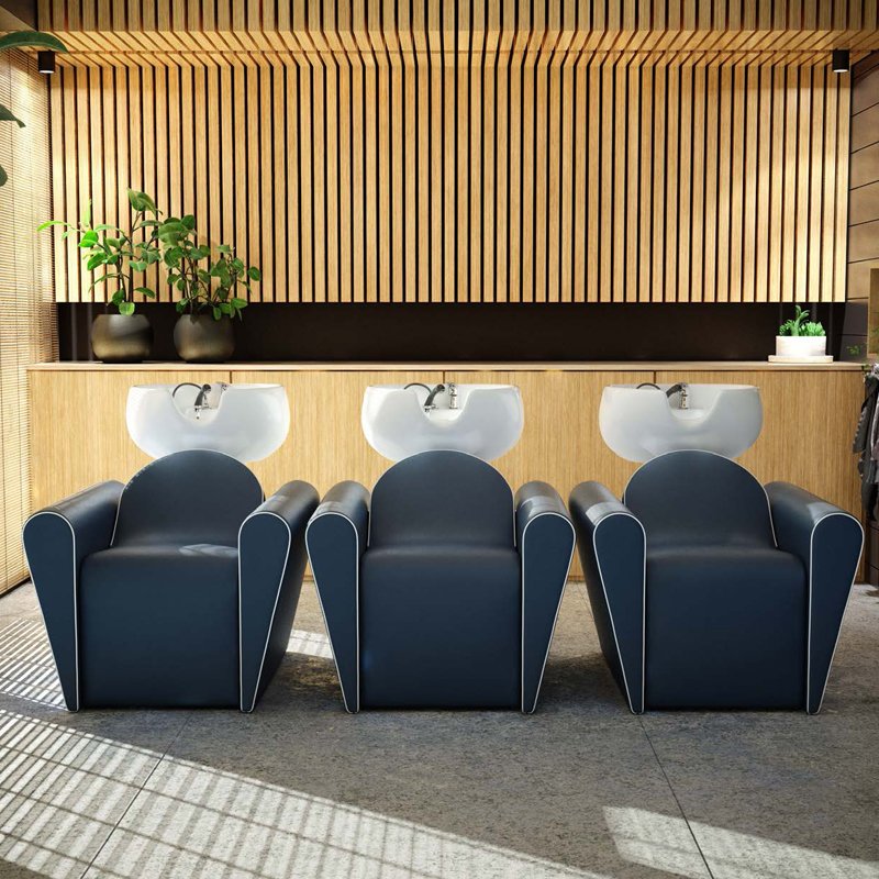 Retroinspirerade schamponering från Gamma Bross - från serien NeoDecò. Går även att få med elektriskt benstöd och shiatsumassage. Priset avser utan massage eller elektriskt benstöd