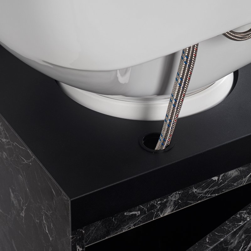 Strömlinjeformad och snygg schamponering med vickbart fat från Pahi Barcelona. Smart förvaring på baksidan och dörr med pushfunktion. Går även att få med massage mot pristillägg.