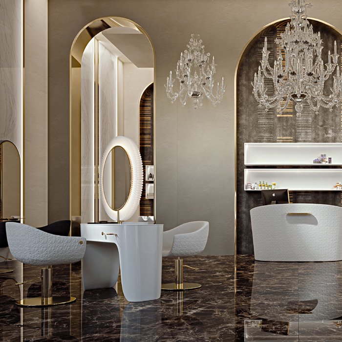 Exklusiv och vacker väggarbetsplats med LED-belysning från exklusiva kollektionen Lady Jane från italienska Gamma Bross.