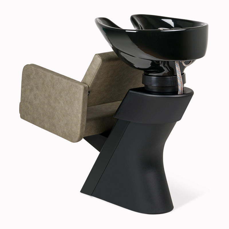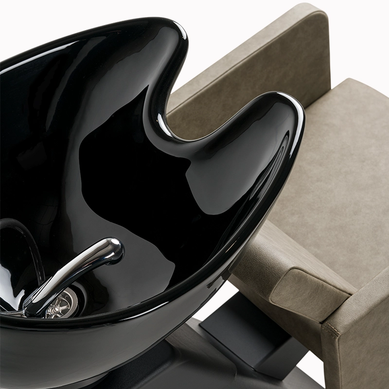 Schamponering från Pahi Barcelona med justerbart fat, vit eller svart. Går att justera upp fatet ända upp till 120 cm i höjd via den rörliga pelaren.