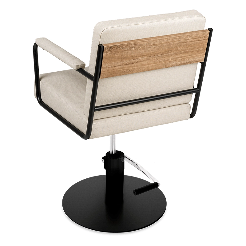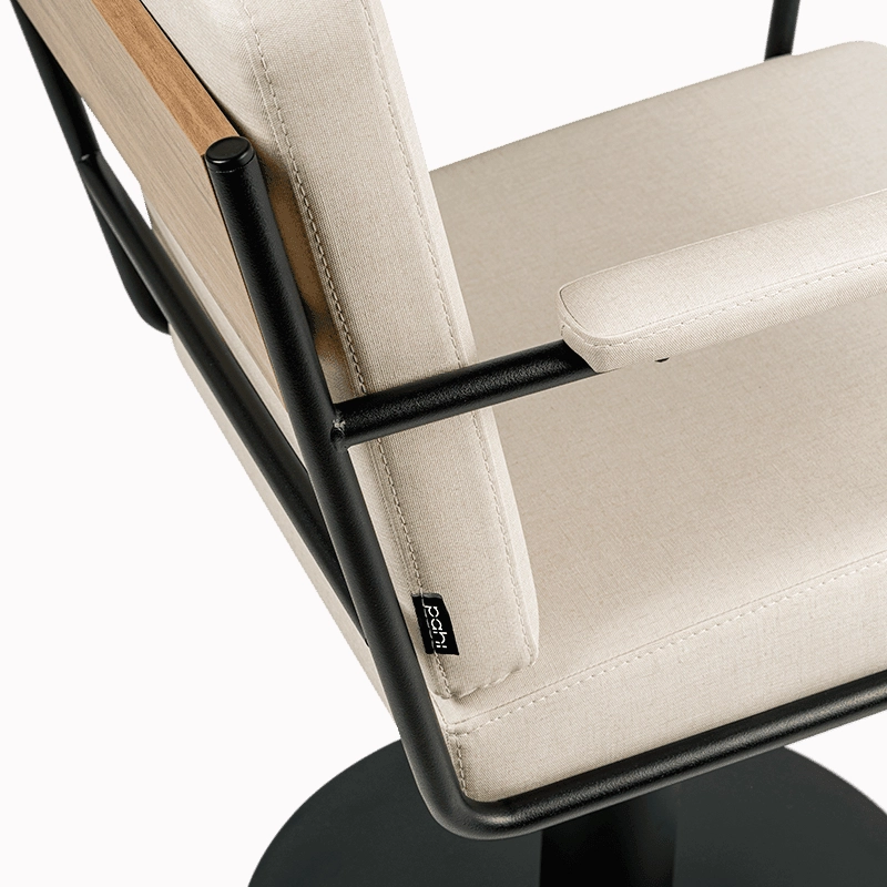 Pumpstol med dekorativ laminat i ryggen och klädda armstöd från Pahi Barcelona. Finns även en variant som heter Bay Relax. Går att få med en mängd olika pumpar. Priset avser med svart fyrkantig fot.