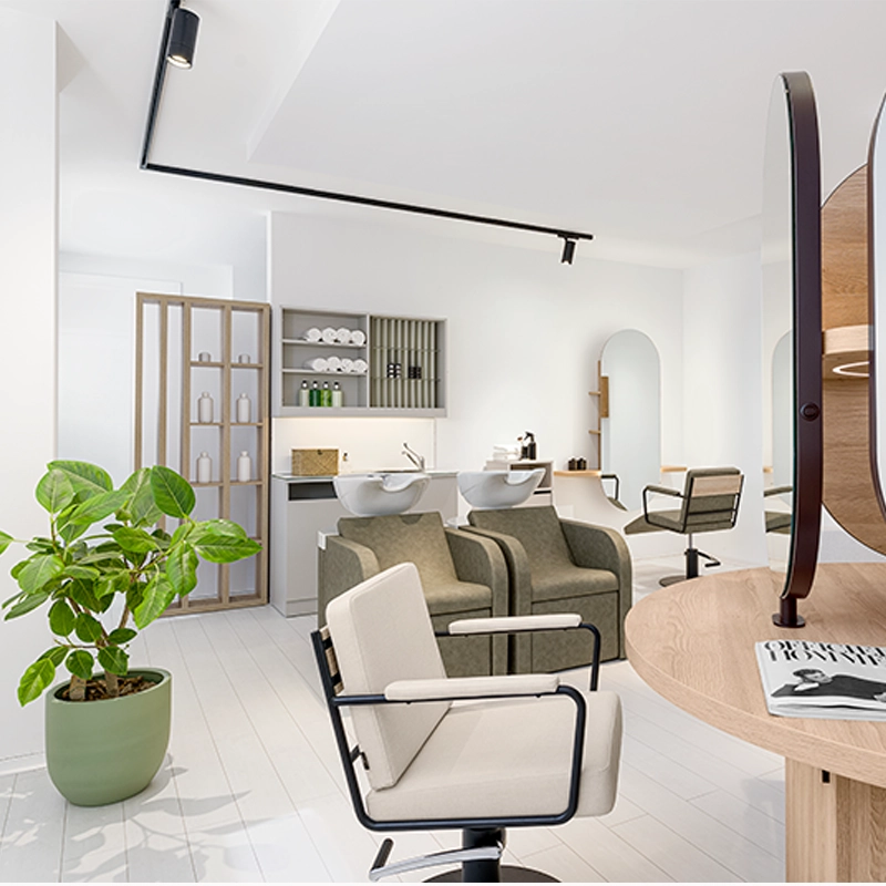 Pumpstol med dekorativ laminat i ryggen från Pahi Barcelona.