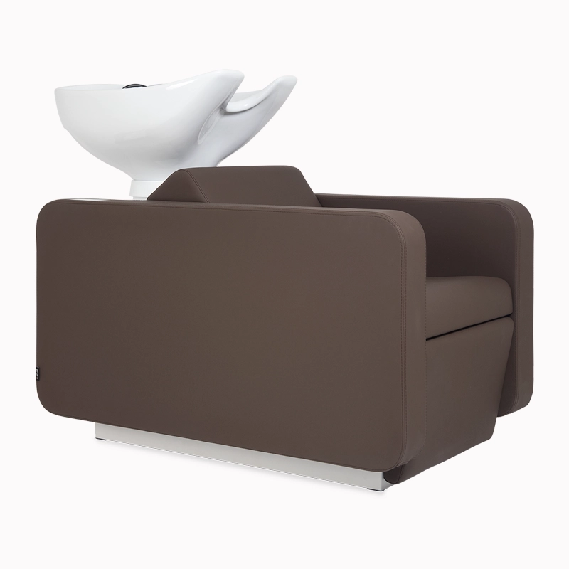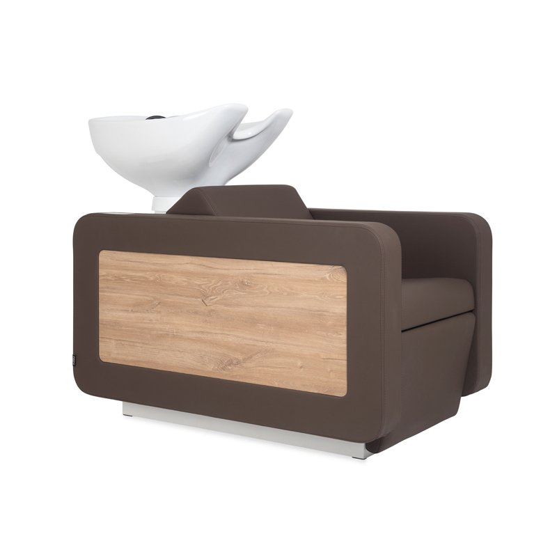Schamponering från Pahi Barcelona med elektriskt benstöd, vickbart fat och inbyggd förvaring. Går att få med eller utan massage. Välj sidor i laminat eller med sky.