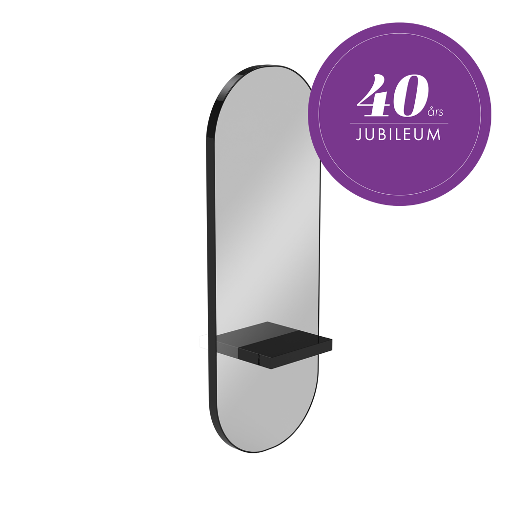 Snygg, svart arbetsplats med hylla från Gamma Bross.