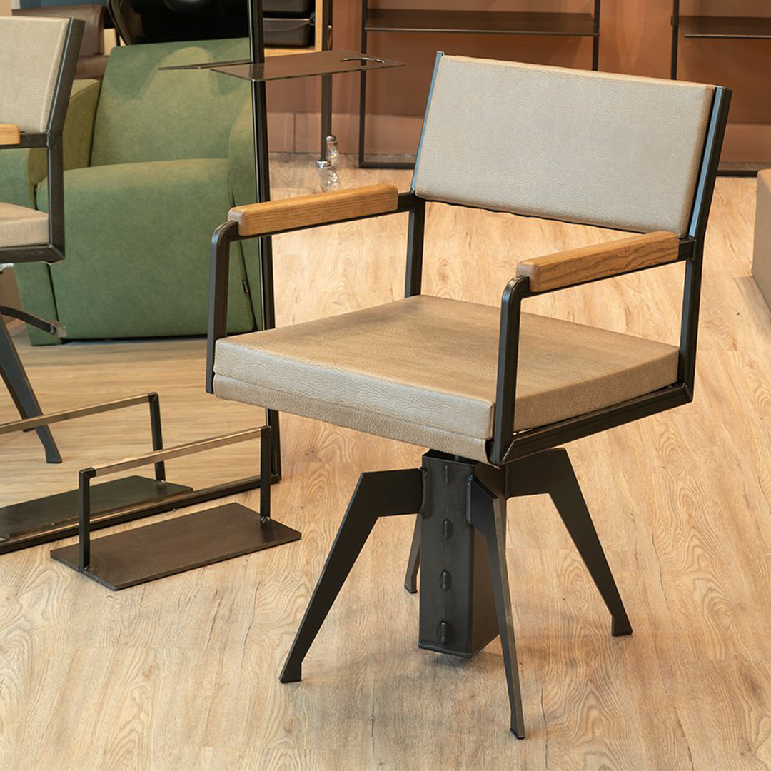 Kaxig pumpstol i industristil med armstöd i ek. Ingår i den urbana serien New York New York från italienska Beauty Star.