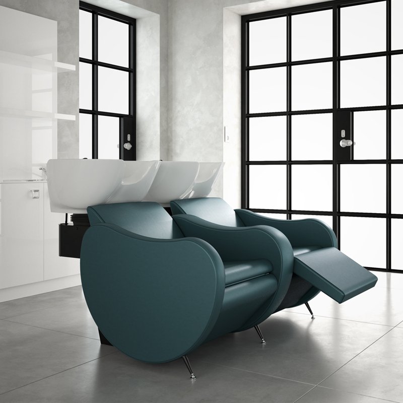 Schamponering med elektriskt benstöd och vickbart fat från italienska Gamma Bross. Du väljer med eller utan massage. Går även att få som dubbel och tre sits. Priset avser utan massage.