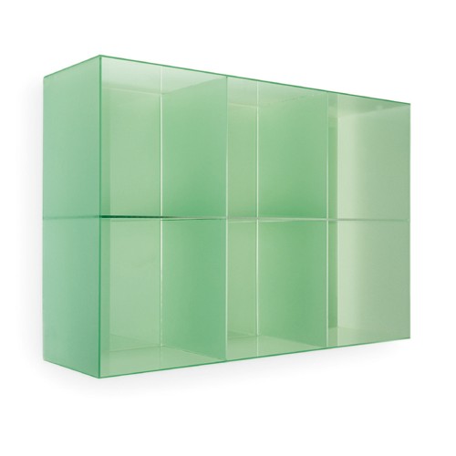 En serie med hyllor i lätt genomskinlig akryl, finns i olika storlekar. Från italienska Gamma Bross.