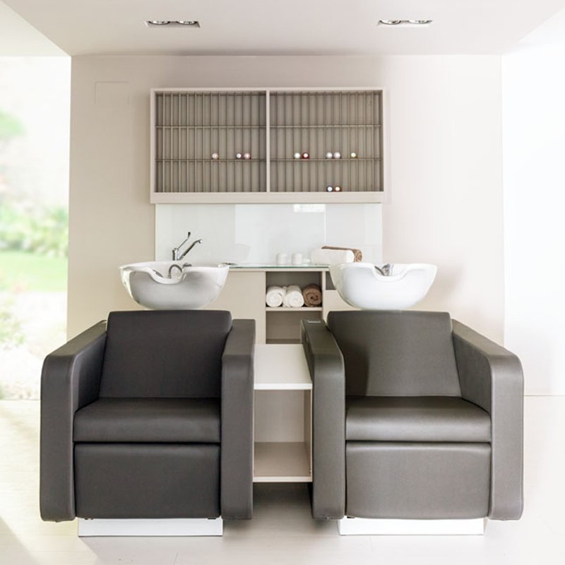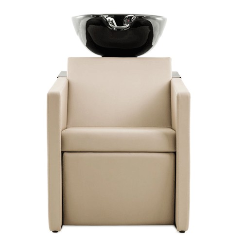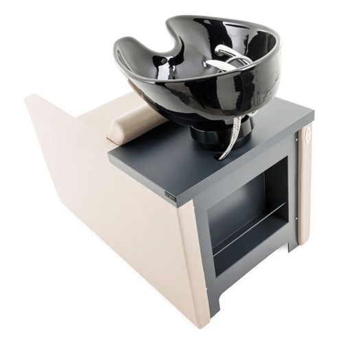 Schamponering från Pahi med vickbart fat och inbyggd förvaring, vit eller svart fat. Går att få med elektriskt benstöd mot pristillägg.