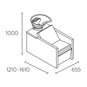 Bredd: 65,5 cm Djup: 121-161 cm Höjd: 100 cm