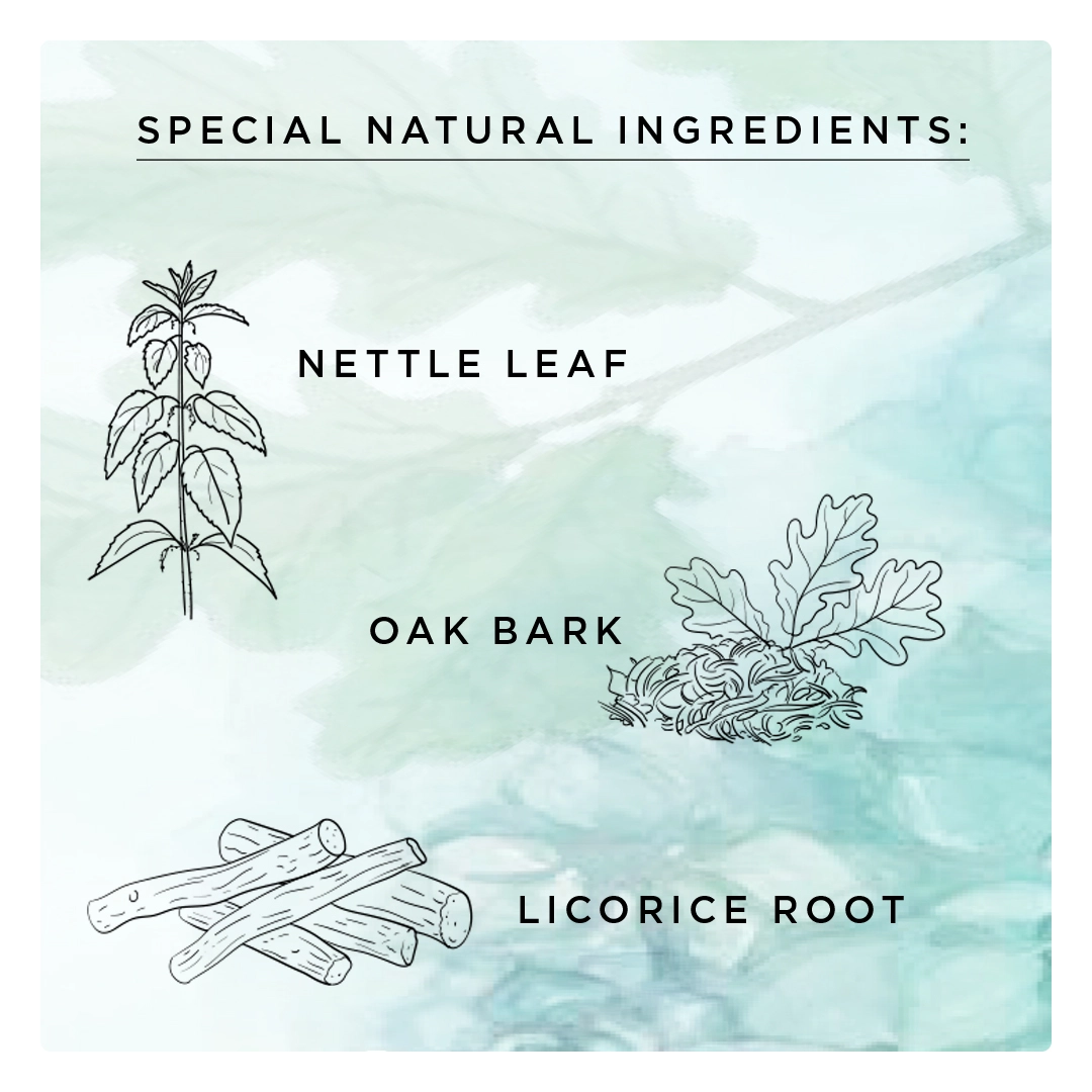 Aktiva ingredienser: Nässla, ekbark och lakritsrot.