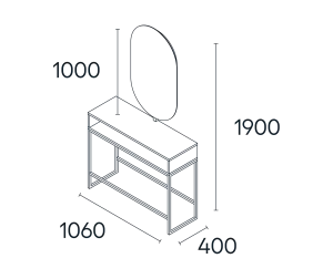 Mått enplatsbord: B:106 cm H: 190 cm D: 40 cm