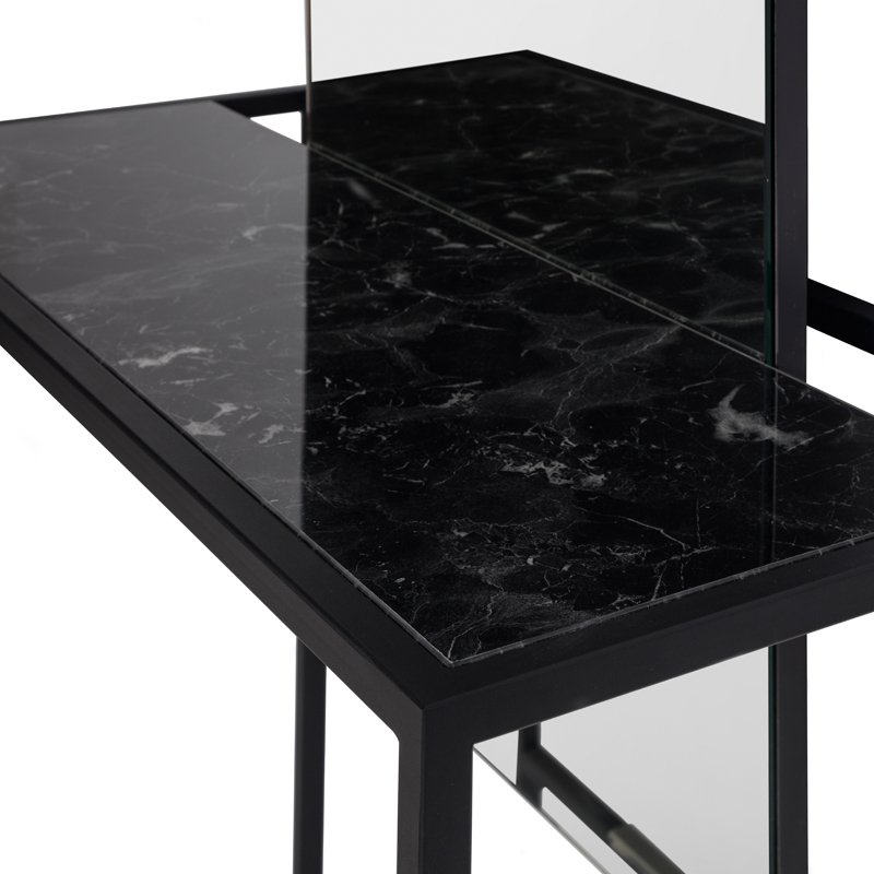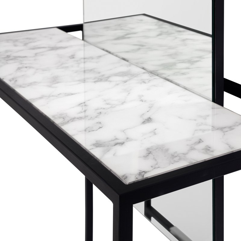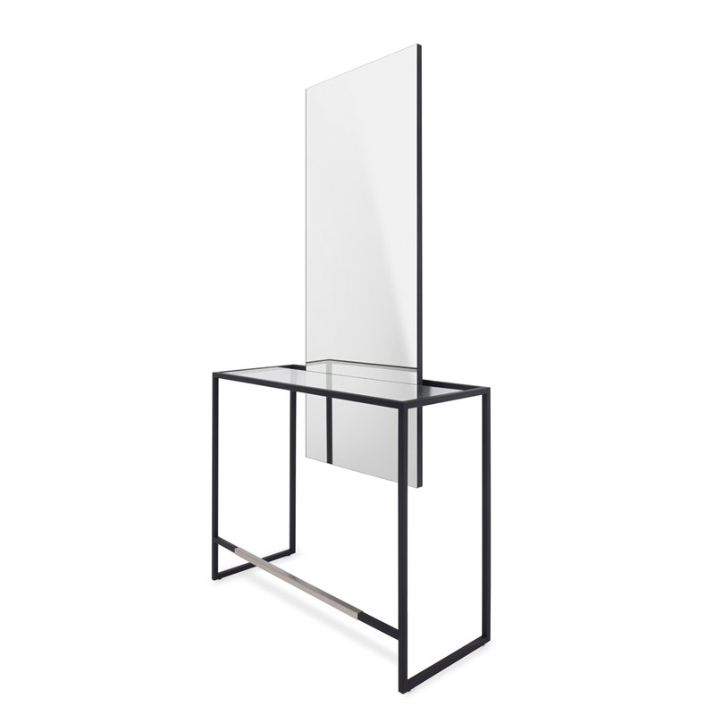Stilren arbetsplats i glas, stål och laminat från Pahi Barcelona.