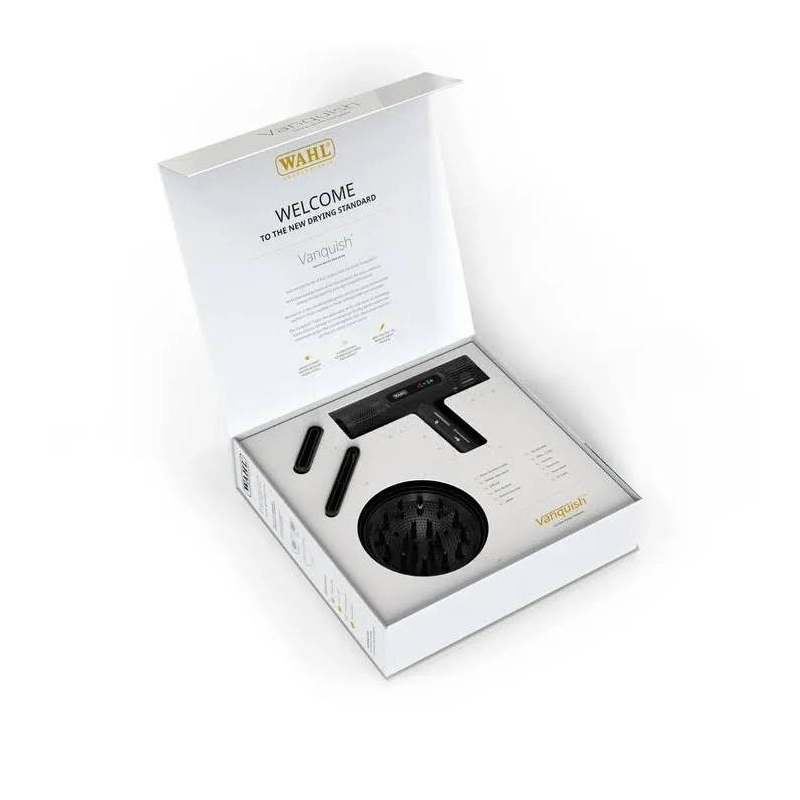 Wahl Vanquish Dryer är en avancerad hårfön med jonteknologi och en kraftfull BLDC motor (brushless direct current). Flow Control teknologi levererar konsekvent värme och ett kraftfullt luftflöde som ger en snabb och jämn torkning som inte sliter på håret. SmoothTone™ motorsystemet tar bort hårda frekvenser och gör fönen tystgående. LED-skärm med minnesfunktion som visar inställningarna. Auto-rengöring för enkelt underhåll.