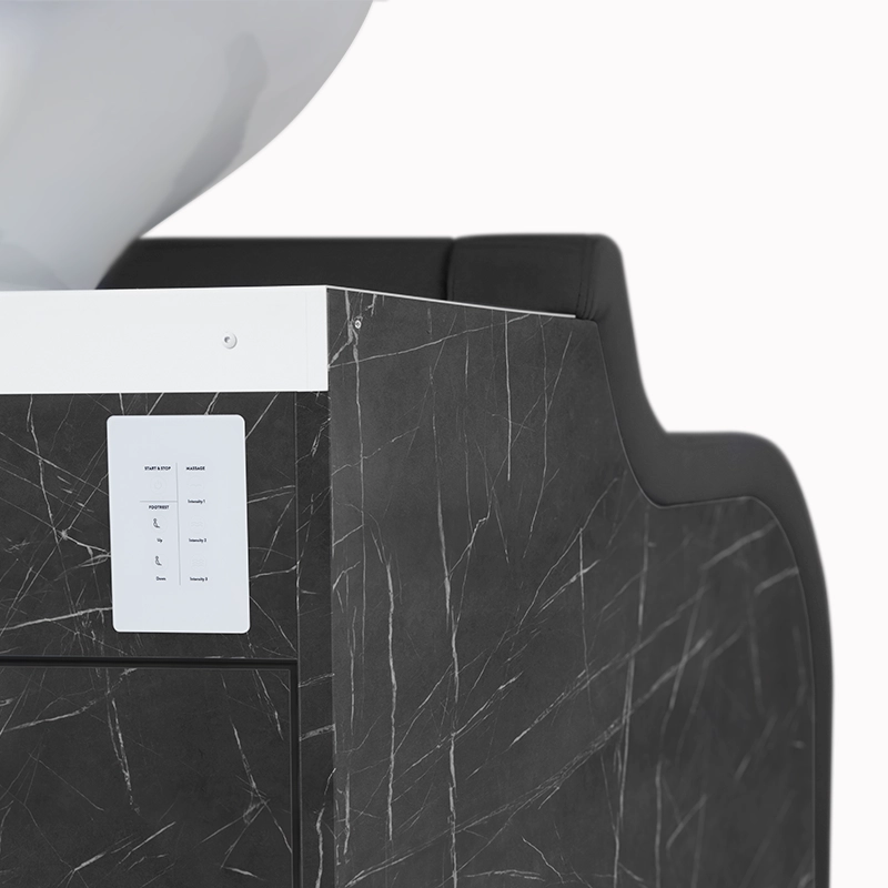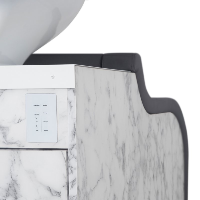 Schamponering med vickbart fat från Pahi Barcelona. Smart förvaring på baksidan- dörr med push-funktion. Går även att få med massage och elektriskt benstöd mot pristillägg.