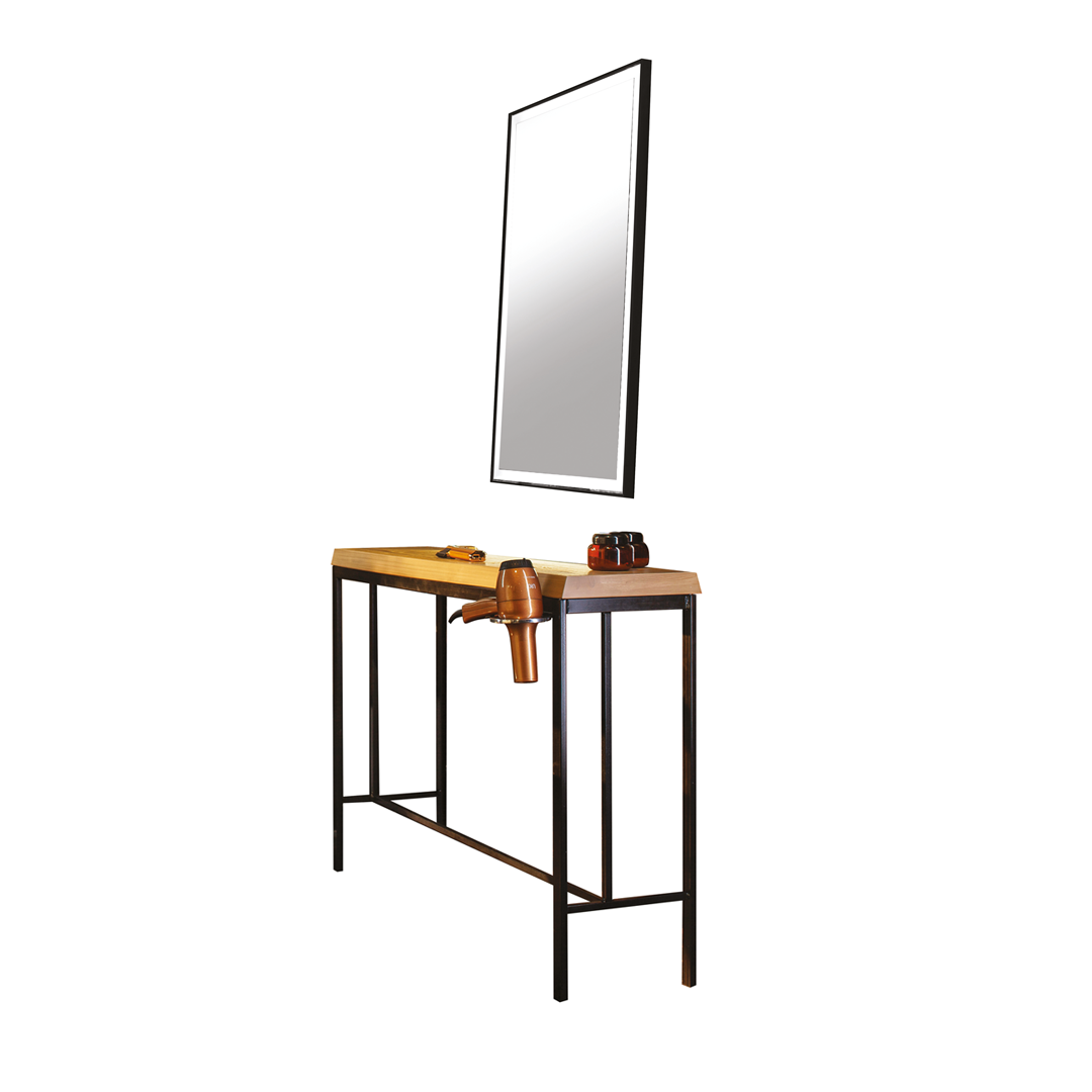 Snyggt konsolbord med praktisk integrerad fönhållare. Komplettera med valfri spegel, här med spegeln Bowery. Ingår i den urbana serien New York New York från italienska Beauty Star.